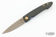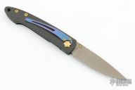 "The original classic ? William Henry?s first design still going strong more than 10 years later. The Lancet defined, and continues to define, the essential gentleman?s folder in the modern world. Sleek, elegant, refined, and comfortable in the hand and to the eye. Like many of our designs, the Lancet offers maximum flexibility and utility ? simply an exceptional daily carry tool, worthy of virtually any cutting task that comes along. Winner of multiple industry awards, in a variety of iterations over the years, the patterns shown here are all new limited edition offerings ? continuing the Lancet?s legacy in fine cutlery." This Lancet linerlock folder features a Tungsten DLC coated blade and carbon fiber frame. Anodized titanium clip. 24k gold fittings. Excellent condition.