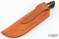 "I was born in Eugene, OR in 1984. My dad, Thad Buchanan, has made knives for as long as I can remember. As a kid I liked to help in the shop every now and again. Growing up I spent time around Bill Harsey, Bob Lum, Ron Lake and their families. I never realized that they were world renowned knife makers; they were just my Dad's friends. But looking back on it, it was pretty cool. These days I wish I would have paid more attention. In 2008 my Dad asked if I wanted to move to Oregon and learn to make knives with him. After working in the restaurant industry I was happy to do something more interesting. Sheath making was one of the first things my dad taught me when I started working in the shop with him. From there I started working with a local saddle maker to better understand the art of leather craft. I make all the leather sheaths for my knives as well as my fathers. I have made sheaths for other makers and collectors as well. I attended my first knife show in April 2011, - the OKCA show in Eugene Oregon. It was that same show where I won my first award for knife making. I won best hunter/utility knife of show. In 2012 I started my own shop back home in Eugene. I love to make R.W. Loveless style knives, but I've made several of my own designs too. I usually put a high mirror polish on my fixed blades and the face of my guards and a nice satin finish on the handle bolts and the sides of the guard. I've used a variety of handle materials including Sambar Stag, Genuine Elephant Ivory, Mammoth Ivory, Mammoth Tooth, Cape Buffalo and many more. I've designed a few folding knife patterns as well. Working with my dad has been an awesome experience and a blessing. I've learned so much in such a short time it's hard for me to believe. I enjoy knife making so much I know I'll do it for as long as I'm capable."