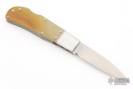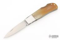 This lockback by Adam Vigil features a hand rub satin finished blade with nail nick. The handle features steel bolsters, liners and backspring. Honey horn covers. Includes original hard case and COA. New from maker!