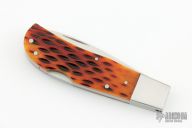 This lockback by Adam Vigil features a hand rub satin finished blade with nail nick. The handle features steel bolsters, liners and backspring. Jigged bone covers. Includes original hard case and COA. New from maker!