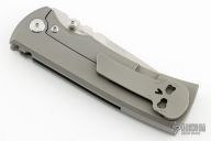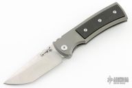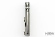 This Chaves Ultramar Redencion Tanto features a satin finished blade with the Chaves logo, dual thumbstuds, and notched thumbrest. The handle is made up of a titanium frame, with carbon fiber inlays, and skull pocket clip (positioned for tip up carry), and a matching titanium backspacer. Has overtravel stop. Blade is centered when closed, and locks up with no play. Has a couple light scuffs and scratches, great condition otherwise.