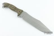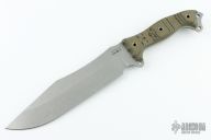 This Battle Cry by Busse Combat features a stonewashed blade with .213" blade stock and 2.200" blade depth, full tang construction. The handle has black/green G-10 scales. New from maker.