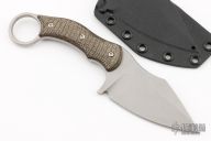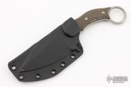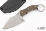 This SRambit by Fox Cutlery is a Borka Blades design, it features a stonewashed blade with false top edge and notched thumbrest, .197" blade stock and 1.609" blade depth, full tang construction with black canvas micarta scales. Comes with kydex sheath.  Excellent Condition.