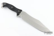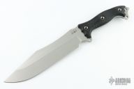This Battle Cry by Busse Combat features a satin finished blade with .210" blade stock and 2.215" blade depth, full tang construction. The handle has black G-10 scales. New from maker.