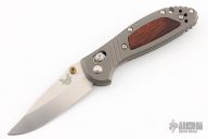 The Griptilian is born of custom knifemaker Mel Pardue's passion for functional designs. You release the creature's ferocity with a thumb stud. At the very heart of the Griptilian is the exclusive AXIS locking mechanism. This modern marvel gives life to a cutting tool like you have never experienced before, especially in a lightweight folder. Rock-solid ambidextrous function is sure to tame the most die-hard of traditionalists. With the 556-1701, Benchmade welcomes in a beautifully upgraded Mini Griptilian combining precision machined titanium alongside wood and brass details. This limited edition is individually numbered and features CPM-20CV stainless steel. CPM-20CV is virtually identical in chemical composition to Benchmade's current M390 steel but is made in the USA by Niagara as opposed to Bohler, which is based Austria. It offers better edge retention but is not quite as tough to sharpen as M390.