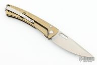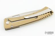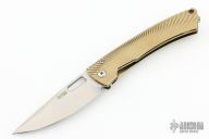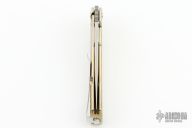 This TiSpine from Lion Steel features a satin finished spear point blade with square thumb-hole and notched thumb-rest. The handle has a bronze anodized and milled integral titanium frame with tip up stainless steel clip. Has a very strong detent, perfect blade seating and lockup. Includes original packaging. Excellent condition.