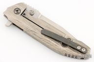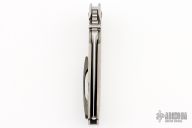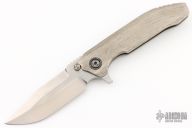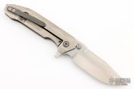 This Peter Rassenti SNAFU integral framelock folder features a hand-rubbed, satin finish blade with dual thumb studs. The integral handle is textured titanium with a zirconium clip positioned for tip up carry.  Very smooth action, blade is centered and has no play whatsoever when opened. Outstanding work from Peter. Has a couple light spots on the blade. Knife is in excellent condition, shows no signs of use/carry.
