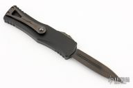 This Hera by Microtech Knives features a double-edged DLC stonewashed blade with dual fullers. The handle has a black aluminum frame with a tip down DLC titanium clip with ceramic ball inset. Dated 08/2021 and s/n 131. Limited edition with trit button. Comes with original box and papers. Excellent condition.