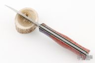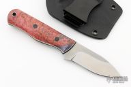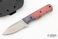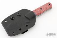 This River Rat by Etowah Valley Knives features a satin finished 8670 Steel blade with .135" blade stock and 1.064" blade depth, full tang construction. The handle has stabilized black ash burl scales with white fiber and black canvas micarta liners. Comes with a kydex sheath. Excellent condition.