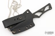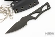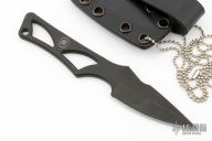 Enyo - a fitting name for this knife, Enyo, was an ancient goddess of war, acting as a counterpart and companion to the war god Ares. This companion knife can be worn around the neck or in a pocket / inside the waist band (IWB). The Enyo’s design makes it a comfortable everyday carry fixed blade with great ergonomics. Enyo is perfectly suited for daily cutting tasks, and is always ready to assist the user. The form fitted Kydex sheath. Pewter Spartan helmet bead on lanyard. This Enyo has a Flat Black coating (SpartaCoat – PVD – Tungsten DLC) and a black Kydex sheath.  Light scuffs are visible otherwise the knife is in excellent condition.