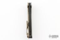 This Neo Framelock flipper by Jens Anso features a DLC Damasteel drop point blade with flipper. The handle has an intricately milled zirconium and anodized titanium frame with a matching clip, tip up carry, zirconium backspacer with lanyard hole, anodized titanium hardware. Nice detent, lockup and blade seating. Comes with original box and COA dated Sept 2022. Excellent condition.