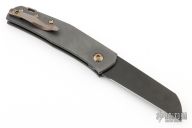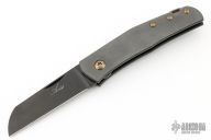 This Monte Carlo by Jens Anso features a DLC Damasteel sheepsfoot style blade with nail nick. The handle is comprised of spiral scratch finished zirconium scales over dual inlaid liners with double detent that provides a crisp click in the open, closed and half stop positions. Titanium backspacer with lanyard bail and a timascus tip up clip. Includes COA dated Sept 2022 and a leather slip sheath. Excellent condition.