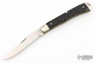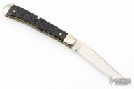 This Trapper by by Queen Cutlery was made as a production knife for Master Smith PJ Tomes features a polished blade with nail nick. The handle has nickel silver bolsters, jigged bone covers, brass liners and stainless steel spring. Excellent condition.