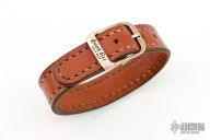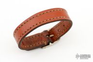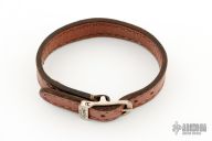 Good Art Hollywood Cuff Leather band with sterling buckle. Has some patina on the buckle excellent condition. 3.5" in diameter, 10.375" overall.