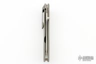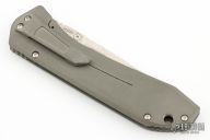 This Ti Monolock by Benchmade features a tumbled drop point blade with single thumbstud. The handle is bead blasted titanium with tip down clip and stainless steel barrel spacers. Nice detent, lockup and blade seating. Has ball bearings. Has some light scuffs and scratches, great condition otherwise.