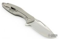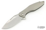 This Arius Flipper by Koenig knives features a burnished with PF blade with thumbhole and flipper. The handle has a bead blasted frame satin titanium backspacer and a bead blasted tip up clip with hidden screws. Has ceramic bearings and a ceramic detent ball. Nice detent, lockup and blade seating. Comes with original box and COA dated December 9, 2022. Excellent condition.