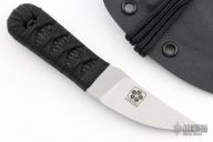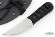 This Upswept Neck Knife by Josh Mason features a satin blade with .152" blade stock, .948" blade depth with hidden tang construction. The handle has a wrapped handle over black shark skin. Comes with a Kydex sheath and paracord. New from maker.