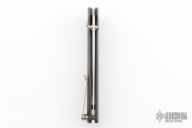 This Maverick by Tactile Knife is a Richard Rogers design with a stonewashed blade, milled black paper micarta frame with titanium pivot and barrel spacers, tip up titanium clip. Excellent condition.