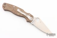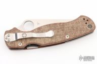 This Paramilitary Linerlock Folder has a satin finished clip point blade with thumb hole and notched thumb rest. The handle has natural canvas micarta scales with stainless steel liners and stainless steel 4-way reversible clip. Comes with Spyderco box, not original. Excellent condition.