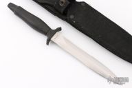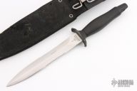 The Mark II is one of the best selling knives of all time. First introduced in 1966, this tactical knife is serialized for collectors. Satin finished partially serrated double edged blade. Black aluminum handle. Black nylon sheath. Has some scratches and scuffs, otherwise excellent condition. S/N I4999S