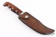 Track knives was founded 1970 by Ray Schmidt and his longtime friend Don Pfirmmer. Ray had been active making and perfecting hunting knives since he was 12 years old. Both Ray and Don were active hunting, fishing and hiking together while growing up in Whitefish however after college Don relocated to Alaska for 7 years. After visiting Ray and returning to Alaska with one of Rays knives he skinned and butchered walrus, caribou, whales, moose and bear than passing the knife around to other hunters to use and see how well it held up. Ray went to Alaska for several months and ended up shooting a Boone and Crockett brown bear and shortly after they both returned to Whitefish to start Track Knives. Track Knives are produced from a bar of high-carbon, low chromium, nickel vanadium alloy with a 58-60 Rockwell C rating. Blades are shaped using a flat grind, a hand fitted brass bolster is added and a variety of handle materials are offered and comes with a saddle leather sheath.