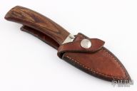 Track knives was founded 1970 by Ray Schmidt and his longtime friend Don Pfirmmer. Ray had been active making and perfecting hunting knives since he was 12 years old. Both Ray and Don were active hunting, fishing and hiking together while growing up in Whitefish however after college Don relocated to Alaska for 7 years. After visiting Ray and returning to Alaska with one of Rays knives he skinned and butchered walrus, caribou, whales, moose and bear than passing the knife around to other hunters to use and see how well it held up. Ray went to Alaska for several months and ended up shooting a Boone and Crockett brown bear and shortly after they both returned to Whitefish to start Track Knives. Track Knives are produced from a bar of high-carbon, low chromium, nickel vanadium alloy with a 58-60 Rockwell C rating. Blades are shaped using a flat grind, a hand fitted brass bolster is added and a variety of handle materials are offered and comes with a saddle leather sheath.