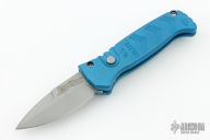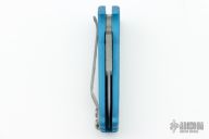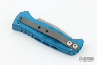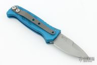 This CS (California Special) Militia side-opening automatic by Rob Dalton has a bead blast finished blade and milled blue anodized aluminum frame. Bead blast titanium clip. Strong and fast coil-spring opening. Has some scuffs, otherwise excellent condition.