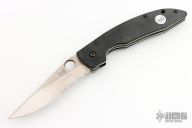 This AFCK liner lock folder from Benchmade has a spear point blade with partial serrations, thumbhole and a notched thumbrest. Handle is black G10 over titanium liners, black backspacer, lanyard hole. Has a few light scuffs, otherwise excellent condition.