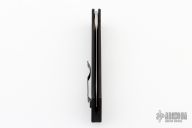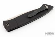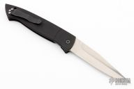 This automatic is a collaboration between Walter Brend and Woodard knives. The Brend flag emblem is on the blade face side and Woodard's WK (Woodard Knives) USA shield is on the frame. The blade is hand-ground by Walter Brend and hand rub satin finished. Black aluminum frame. Strong coil-spring automatic action. Has some scratches and scuffs, otherwise good condition.