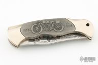 This is a 1993 special edition honoring the motorcycle.  Scales are cast with images of a 1911 cycle and a modern cycle and the "Ride to Live - Live to Ride" motto.  Blade is etched with Harley's headed to Sturgis.  Comes with original presentation box and papers. Excellent condition. #3859 on lockbar, 9999 were made.