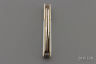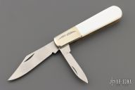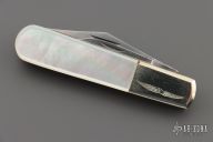 This slipjoint by Parker Custom Series has satin finished blades with nail nicks. Nickel silver bolsters, mother of pearl covers, brass liners, stainless steel spring. Has a couple light scratches, otherwise excellent condition.