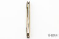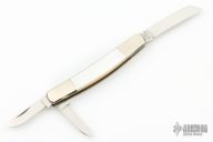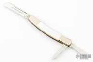 This slipjoint by Parker Custom Series has mirror polished blades with nail nicks. Nickel silver bolsters, mother of pearl covers, brass liners, stainless steel springs. Has a couple light scratches, otherwise excellent condition.