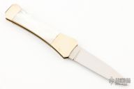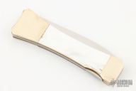 This lockback by Parker has a mirror finished blade with nail nick. Nickel silver bolsters, mother of pearl covers, brass liners, stainless steel spring. Has a couple light scratches, otherwise excellent condition.