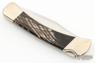 "This old classic BUCK knife 110 "Folding Hunter" was first introduced in 1965 - it has been BUCKS mainstay ever since. Some say the Buck 110 is the most copied knife in the world. This Buck automatic knife has a mirror polished blade, beautiful horn handle with a nickel silver frame and a button that opens knife automatically. A must for any BUCK collection." Has a few light scratches, otherwise excellent condition. Fires nice and strong!