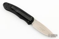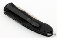 This Alias II Auto by Bradley Cutlery features a spear point tumble finished blade with false top edge and notched thumbrest. The handle has a black aluminum frame with safety, and a tip up or down reversible black stainless steel clip. Excellent condition.