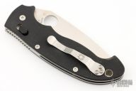 This Manix 2 has a satin finished CMP S30V stainless steel drop/ spear point blade with thumb hole and notched thumb rest. Handle is black G10 over stainless steel liners, 2-way reversible tip up stainless steel clip, and lanyard tube pin. Excellent condition. Comes with original box and paperwork.