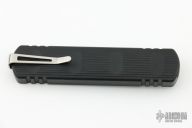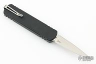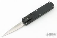 This Zulu Spear by Darriel Caston features a satin finished double edged blade. The handle has a green aluminum frame with stainless hardware and clip. Black push button. Comes with original box. Excellent condition.