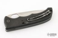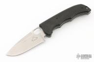 This Dual Action AMS from Matt Diskin features a tumbled finished drop point blade with swedge and thumb hole crafted from AUS 8 Steel. The handle is comprised of textured black G10 scales over stainless steel liners. Black coated stainless steel tip up pocket clip. Features an scale release auto action as well as manual function. Black G10 Backspacer. Comes with original packaging. Has somes scuffs and scratches, has been resharpened, otherwise good condition.