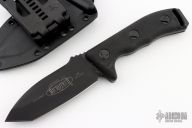 This black tactial Currahee has a tanto plain edge blade, .200" blade stock and 1.516" blade depth, full tang construction. Dated 04/2015 with a serial number of 002367. Includes nylon tactical sheath. Couple light scuffs, otherwise excellent condition