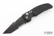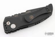 This EX-A01 by Hogue Knives is an Allen Elishewitz design, it features a black tanto partially serrated 154CM blade with notched thumbrest. The handle is black aluminum, tip up or down reversible black stainless steel clip. Has safety. Comes with Hogue box and papers. Excellent condition.