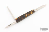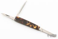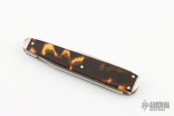 This slipjoing by Dan Burke features hand-rubbed satin finish blades and a pick, polished stainless steel double bolsters, and tortoise covers over gold leaf, stainless steel springs and liners. Blades open and close with a nice snap. Comes with a zippered case. Excellent Condition.   #2