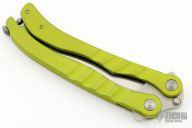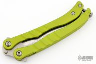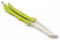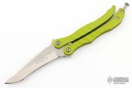 This Metalmark Balisong by Microtech features a stonewash finished blade. The handles are green aluminum with blasted SS T-latch. #01307 and 03/2013. Excellent condition.