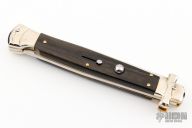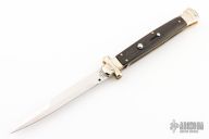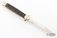 Angelo Campolin Sr. was born in 1923 in Maniago, Italy. He worked on perfecting his knife making skills before WWII and at this time made his first switchblades. After the war, in 1947 he started his company and made 30 stilettos with the marking “Angelo Campolin”. In the 1970’s Angelo’s son Gianni started to work in the company and they were specializing in folding hunting knives and also manual folding stilettos for the Robert Klaas company in Solingen Germany with their Kissing Cranes mark. In 2002 American switchblade collectors Dan Fuller, Brad West, and Tim Zinser were visiting Maniago and enjoying a few glasses of wine in a bar with Angelo Jr. and Gianni. The discussion was about a new name for some knife projects they wanted to pursue. It was Brad West that suggested the tang stamp should be AGA, for Angelo, Gianni, Angelo, thus representing three generations in the knife making business. The Campolins liked it and it stuck. In the beginning it was just a few items, but grew to the point where now there are 12 models and different scale options. The goal has been to offer quality switchblades using the old methods and traditions. Being a collector himself, Angelo Jr. knows what others like. The company headquarters has moved to Austria with production still in the original Maniago shop, as well as the others in Maniago that produce the knives for A.G.A. Campolin.