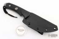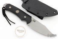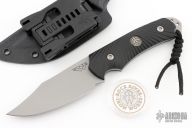 This Hide Fighter by Steve Woods and Wilson Combat features a bead blasted blade .125" black stock and 1.454" blade depth, full tang construction. The handle has black G-10 scales. Comes with a kydex sheath. New from maker!