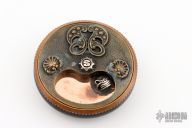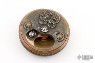 This pill case from Starlingear features copper, brass, and sterling silver construction. Very nice embellishments. Excellent condition.