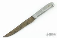 Frank Richtig made knives for about 50 years from the 1930's to the 1970's. He was born in Nebraska in 1887, and became an apprentice blacksmith in 1905, and in 1916 began experimenting with electric heat treating of steel. in 1925 he started producing knives. He produced many styles of cast aluminum handled kitchen knives as well as aluminum and regular handled hunting knives. His main credit would be in his secret tempering method. Where ever he'd set up his wares he'd bring an anvil along and proceed to cut a piece of metal in two and still retain an edge sharp enough to shred paper. In 1936 Frank Richtig appeared in Ripley’s Believe It or Not after using one of his knives to cut the lock from a jail cell. Richtig’s claim to fame, so to speak, was in his blades. Having the proper amount of hardness to cut through steel and iron, and yet be able to maintain a fine cutting edge. It is said that Richtig’s method of treating the steel, a closely guarded secret while he was alive, is is something he took to the grave with him. One of his other unique features was his cast aluminum handles. In 1938 he was declared a Master Ironsmith by the National Blacksmith and Welders Association. Frank passed away in 1977.