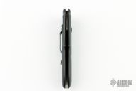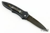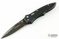 This Cobra side-opening automatic by Paragon Cutlery features a black blade with swedge. Coil spring. Sliding safety. Black aluminum handle with rubber inserts, tip down black stainless steel clip. Comes with original box. Excellent condition.
