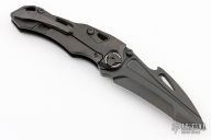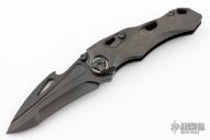 There is no doubt that the Athron has a killer look. We first thought of Alien VS Predator all encapsulated in a knife, but we've been hearing about its dinosaur skull shape—so let's go with that. We can see that, too. This flipper knife from Rike Knife has a smooth, lighting fast blade deployment. The to-die-for contoured titanium handle, like the blade, is beautifully shaped. Rike wanted an artistic, dinosaur-esque blade and refused to compromise on materials for this knife that's masquerading as a Transformer-ish work of art. This unique knife just begs to be in any cool collection. Functional and outrageously fabulous—we know you'll enjoy its uniqueness, too.