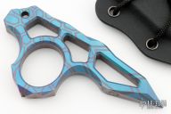 Neither knife nor knuckle this little guy is ready to do terrible things when let off the chain. Carried attached to keys, in the pocket, on the belt. Composed of Titanium. Includes a kydex sheath. Excellent condition.