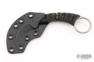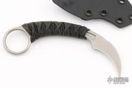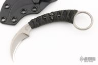 This PiKa is a Doug Marcaida design produced by Bastinelli Knives, it features a chisel ground stonewashed hawkbill blade with notched thumbrest and swedge, .150" blade stock and .678" blade depth, full tang construction. The handle has black wrap with a bronze menuki. Comes with kydex sheath with belt clip and a zippered case. Excellent condition.